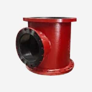 Material: ductile iron for high pressures, grey iron for low pressures